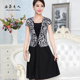 中老年女装夏装修身连衣裙短袖雪纺印花时尚妈妈装假两件连衣裙