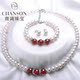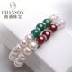 商诵 淡水珍珠项链手链耳钉三件套女扁圆镶玛瑙 母亲节送妈妈正品