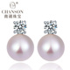 商诵珠宝 925银正圆淡水珍珠耳钉耳环饰天粉色紫色然女正品送妈妈