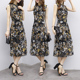 2017夏季新款女装短袖大码显瘦长款裙子修身长裙雪纺碎花连衣裙女