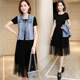 欧洲站2017夏韩版套装裙显瘦外搭牛仔马夹裙子两件套网纱连衣裙女