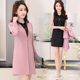 风衣女中长款两件套春秋新款2017韩版修身气质外套背心裙套装潮流