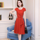 2017夏天新款女装大码短袖中裙子韩版修身显瘦女士中长款连衣裙潮