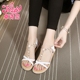 卓诗尼2017夏季新款女鞋 坡跟水钻休闲甜美露趾中跟沙滩凉鞋女士