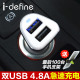 车载充电器汽车一拖二点烟器头双USB手机快充4.8A万能型通用车充
