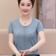 大码中老年女装t恤夏镂空镶钻妈妈装夏季短袖冰丝老年针织衫女