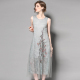 2017春夏新款女装复古气质淑女刺绣无袖圆领中长款修身连衣裙长裙
