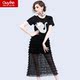 欧衣客2017夏季收腰中长款网纱半身裙两件套连衣裙t恤裙子套装女