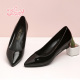 卓诗尼欧美高跟坡根女鞋女子工作坡跟浅口女鞋子女人2017尖头单鞋