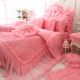 情儿坊 蕾丝四件套韩式粉色贡缎提花公主婚庆床品 梦幻床上用品