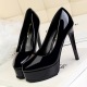 2017春新款欧美风时尚简约粗跟超高跟防水台漆皮浅口方头单鞋又鞋