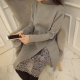 秋冬新款蕾丝拼接开叉中长款打底针织衫女毛线上衣修身显瘦连衣裙