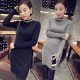 秋冬毛线衣套头中长款半高领打底裙女紧身显瘦长袖针织包臀打底衫