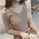 秋冬季新品修身长袖套头毛衣秋装短款镶钻蕾丝纯色针织打底衫女
