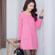 T恤女春装2017新款韩版宽松中长款大码女装春秋季长袖V领打底衫