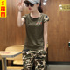 2017新款休闲运动服套装女夏季大码春夏潮胖MM时尚迷彩宽松两件套