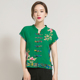 韩紫桐 2017夏款立领上衣民族风女装唐装棉麻短袖衬衫复古印花T恤