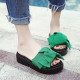 蝴蝶结带钻松糕凉拖鞋女夏新款平底外穿一字拖时尚室外厚底潮女拖