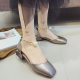珍珠扣矮跟女鞋夏天中空平头漆皮粗跟百搭凉鞋浅口中跟单鞋2017潮