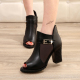春鞋女中跟韩版妈妈凉靴网纱透气粗跟中老年鱼嘴半凉鞋夏大码单鞋