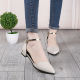春款女鞋粗跟韩版中跟尖头中空半凉鞋夏浅口绒面透气单鞋气质优雅