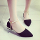 春款单鞋女平底中空尖头包头半凉鞋串珠浅口绒面透气韩版34-41码