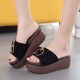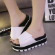 外穿拖鞋女夏韩版松糕厚底室内外平跟一字拖露趾中高跟凉托鞋子春