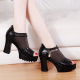 鱼嘴凉鞋女夏网面透气高跟鞋气质优雅粗跟防水台百搭OL女士单鞋潮