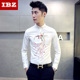 男士白衬衫男长袖修身青少年薄款印花衬衣春夏季韩版潮流学生寸衫