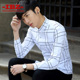 春夏季男士长袖衬衫男青年修身韩版条纹格子衬衣男装潮流薄款寸衫