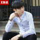 男士条纹衬衫男长袖修身青少年韩版帅气薄款衬衣夏季潮流学生上衣