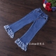 中小童裤子春夏季新款儿童女童春装百搭流苏喇叭裤修身牛仔裤长裤