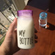 钢化耐热玻璃杯密封杯子带盖时尚吸管水杯韩国进口果汁牛奶喝粥杯