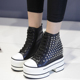 欧洲站2017新款高帮鞋铆钉厚底内增高系带真皮单鞋粗跟休闲鞋女秋