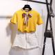 2017夏季新款韩版丝巾蝴蝶结冰丝针织衫女套头宽松短袖T恤上衣潮