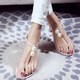 珍珠真皮凉鞋女平底2017夏季新甜美韩版T型夹趾平跟凉鞋百搭学生