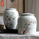 帛画|景德镇陶瓷器亚光白茶叶罐铁环 手工绘画喜迎花开存茶器