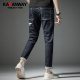卡丹威2017春夏小脚牛仔裤男潮流印花百搭韩版修身型显瘦牛仔长裤