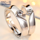 925银开口戒指女韩版情侣戒指男士情侣对戒心形创意礼物可刻字