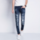 2017夏季 青少膝盖破洞九分牛仔裤小脚裤潮男生9分裤个性