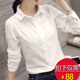 鲨牧新款气质修身职业大码白衬衫 春秋女装韩版长袖衬衣撞色纽扣
