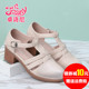 卓诗尼粗跟凉鞋女夏中跟露趾简约舒适一字带2017新款搭扣罗马女鞋