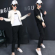 欧洲站2017春装新款休闲运动套装韩版撞色拼接短袖哈伦裤两件套潮