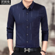 团圆狼春秋季男士长袖条纹衬衫薄款衬衣中年男爸爸装商务棉质寸衣
