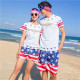 浪新款情侣沙滩裤韩男女大码五分休闲运动速干短裤T恤 红条白星