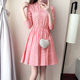 2017春季新款修身蝴蝶结复古气质百褶裙中长款印花雪纺连衣裙女潮