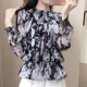 2017夏季新款韩版荷叶一字领修身气质高腰裤时尚显瘦雪纺连衣裤