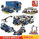 包邮小鲁班F1赛车模系列|F1蓝光赛车运输车|拼装积木玩具