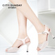 都市星期天新款凉鞋女夏欧美中跟高跟鞋百搭防水台丁字扣清仓女鞋