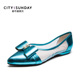 City sunday/都市星期天夏新款休闲尖头低跟真皮女鞋气质浅口单鞋